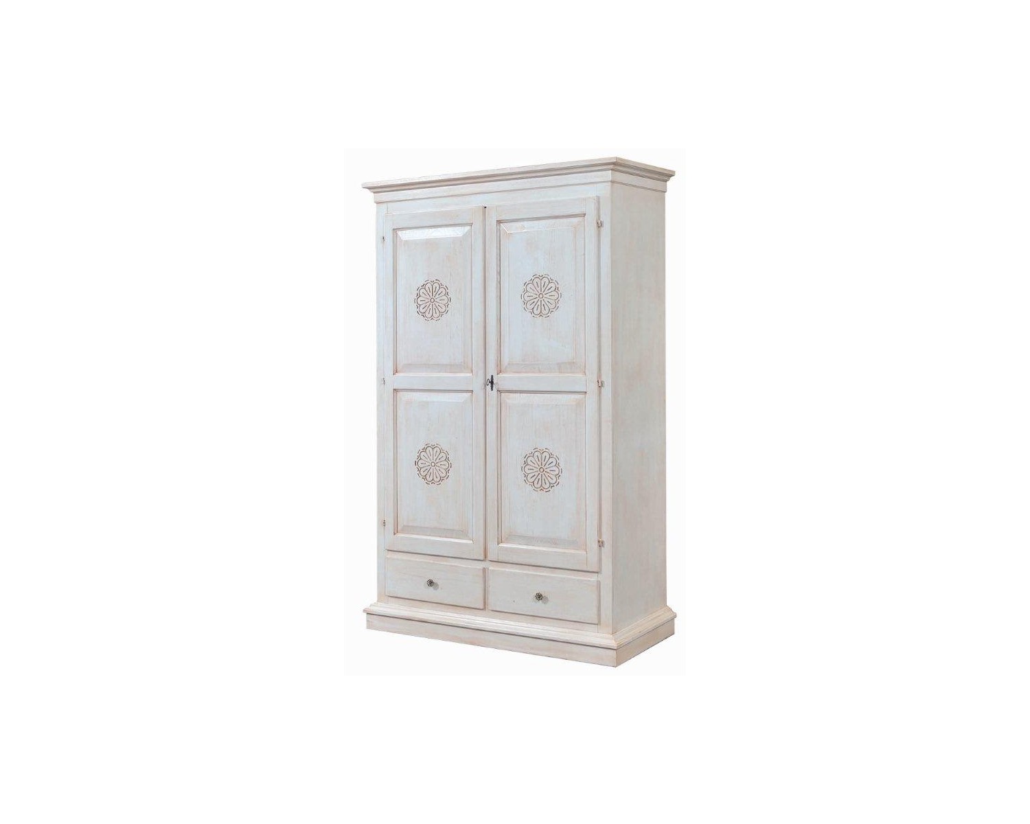 ARMADIO 2 PORTE INTAGLIATO 2 CASSETTI BIANCO ANTICATO