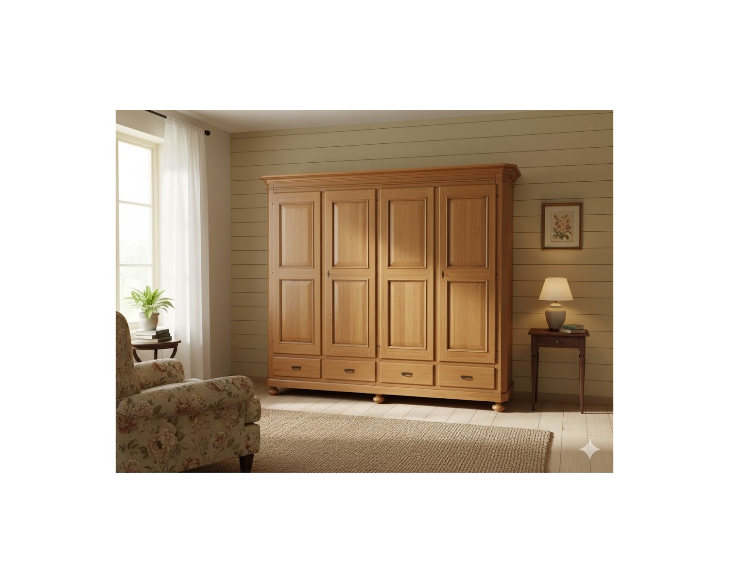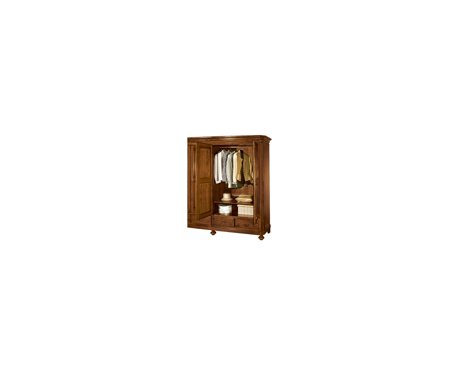 armadio 4 ante battenti e 4 cassetti smontabile in legno massello colore noce arte povera, prodotto italiana produzione veneta, tempi di produzione 25 giorni DIMENSIONI L 243 P 63 H 217