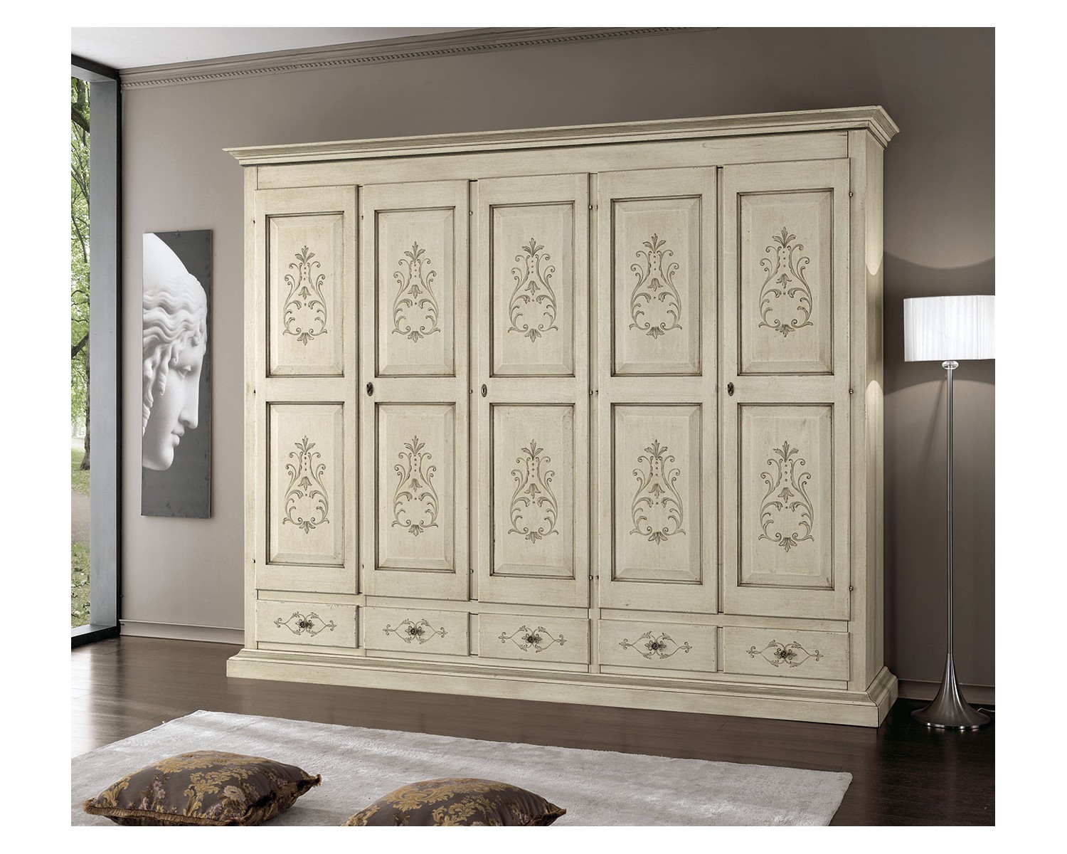 armadio ante battenti - 5 ante - 5 cassetti (interno armadio viene prodotto colore avorio)