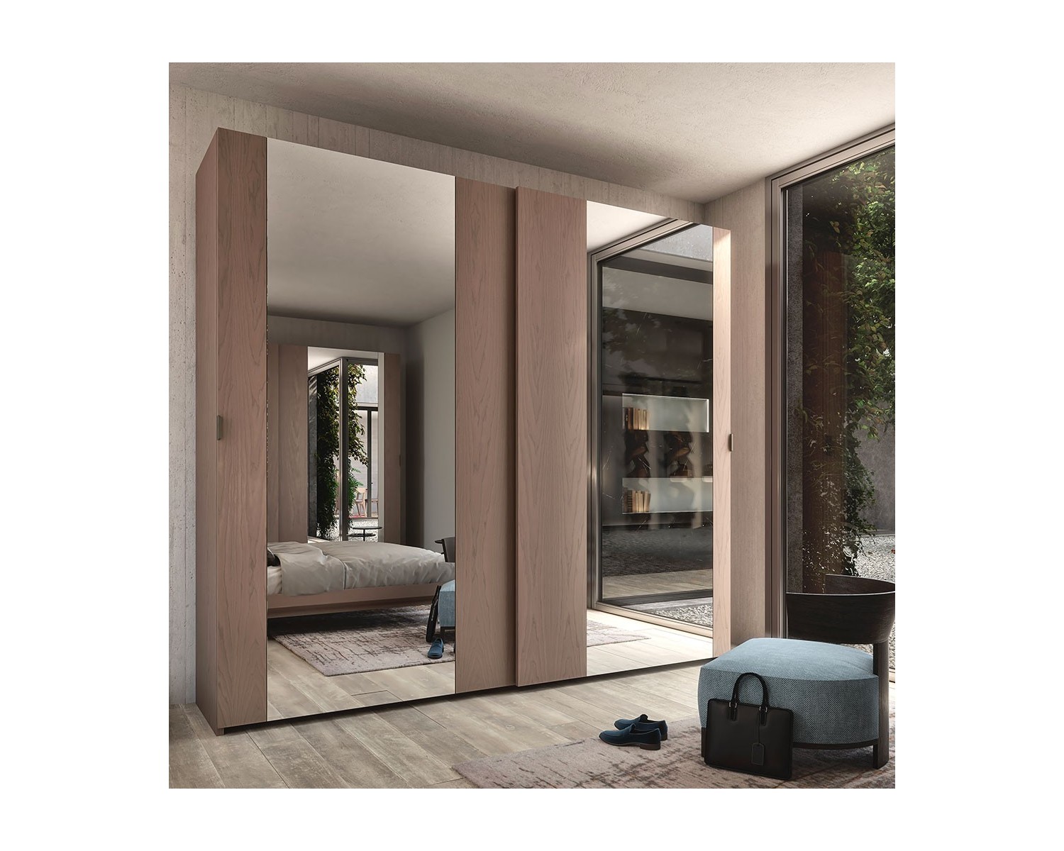 Armadio ante specchio legno massello