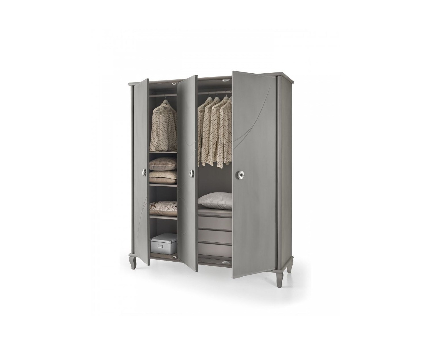 Armadio a 3 porte completo di 3 ripiani , 2 bastoni appendiabiti e 1 cassettiera interna a 3 cassetti.