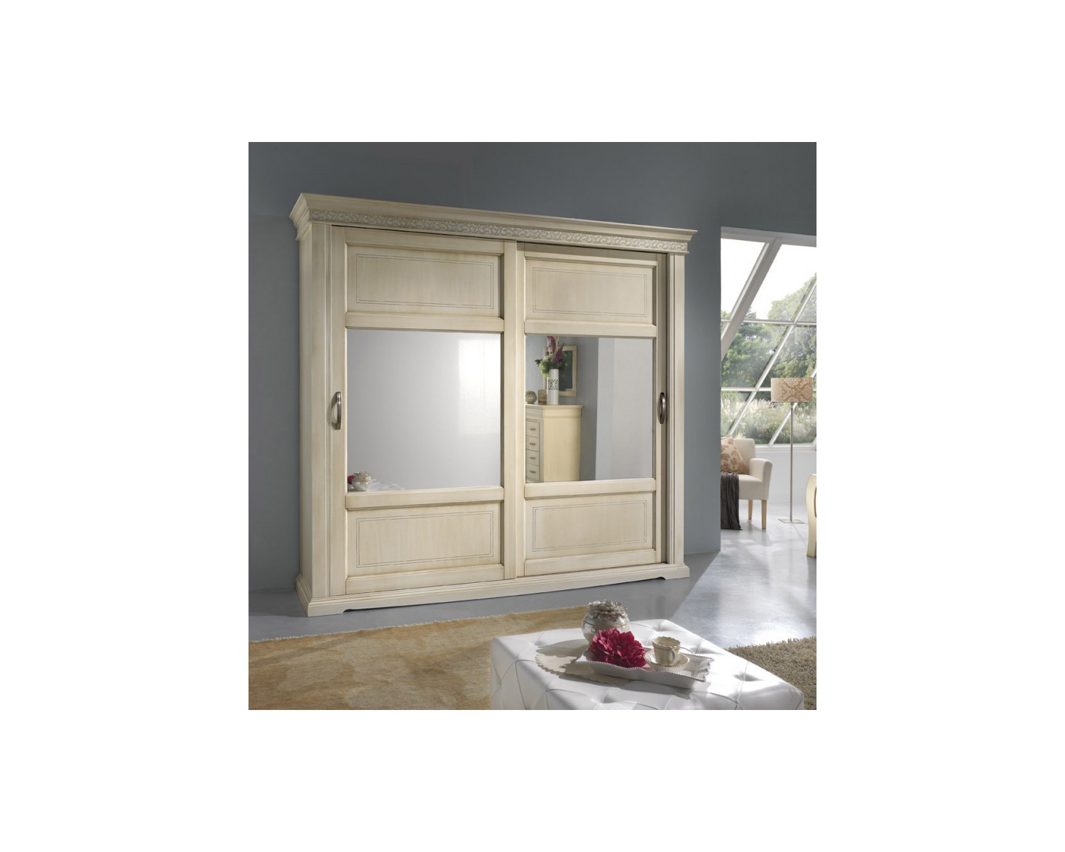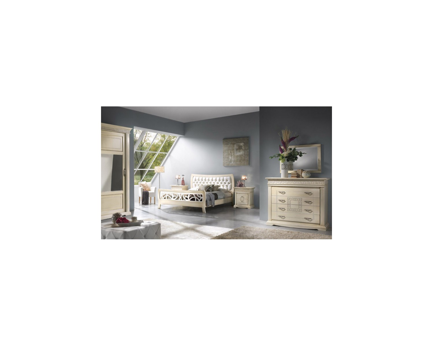 CAMERA COMPLETA LEGNO MASSELLO CON INTAGLIO ARMADIO ANTE SCORREVOLI LETTO COMO E COMODINI