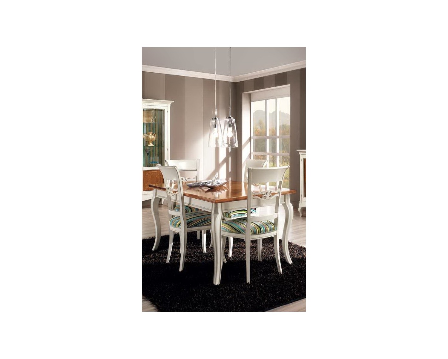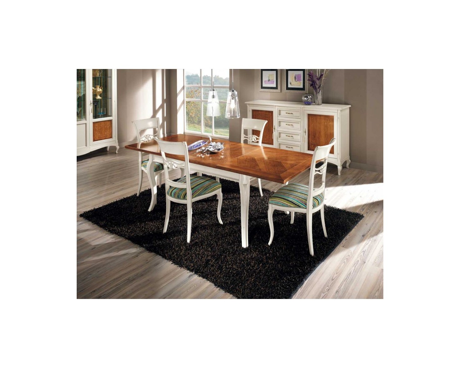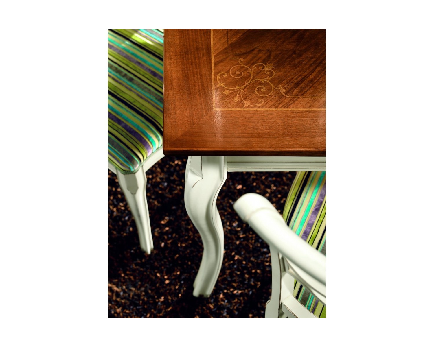 TAVOLO LEGNO MASSELLO CON INTARSIO FLOREALE E CON FILETTO