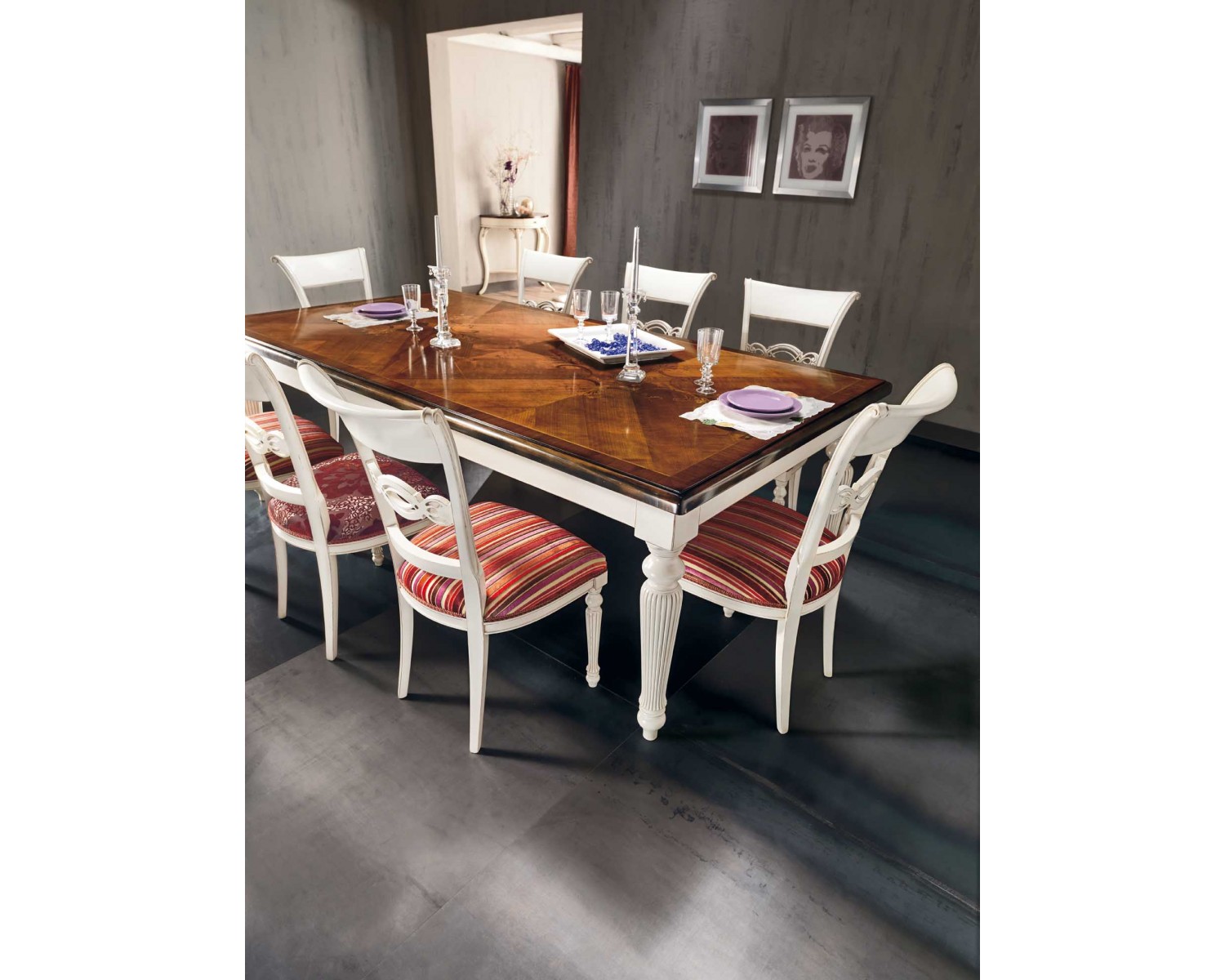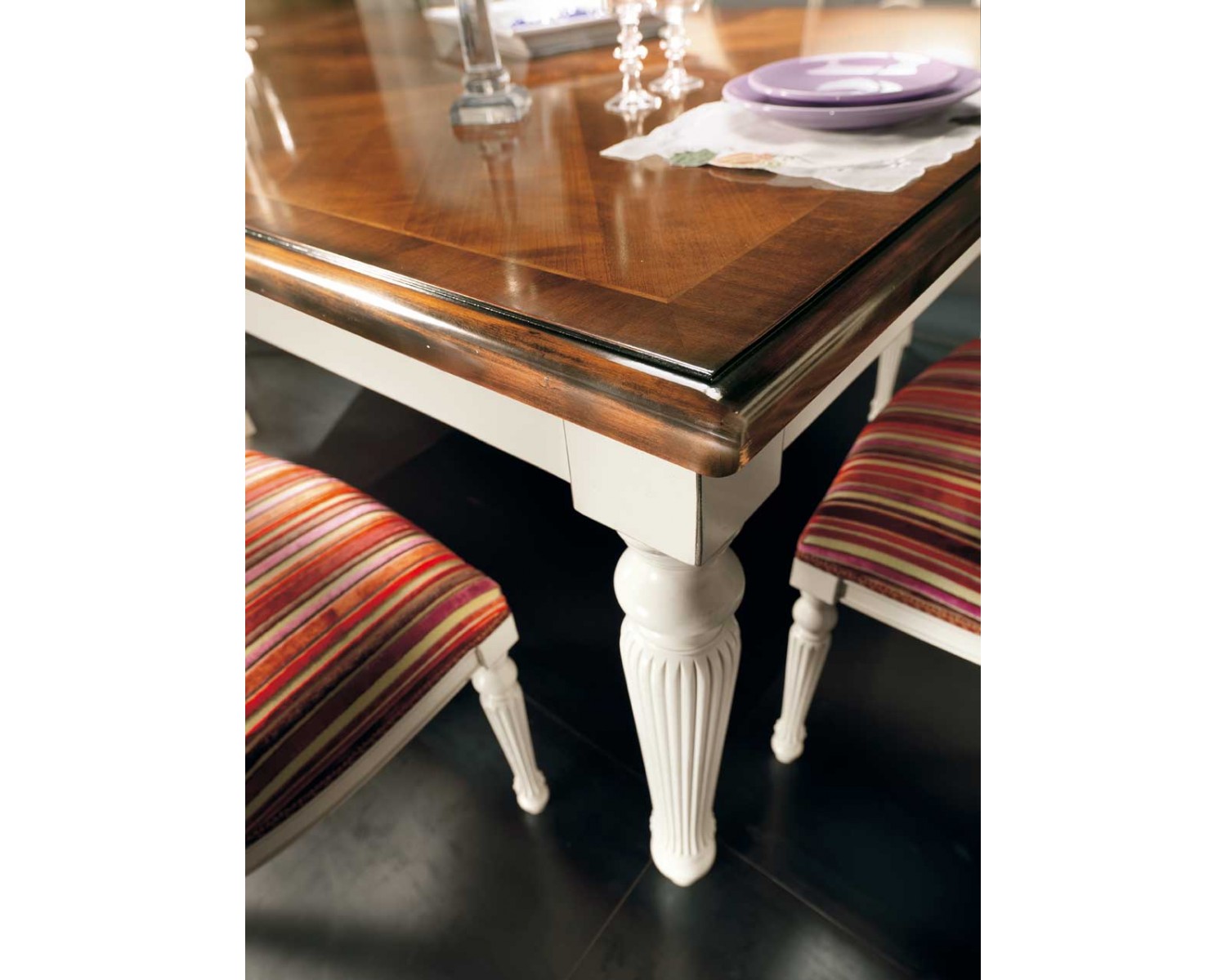 TAVOLO FISSO L.240 P.128 H.78 INTARSIO VERONA GAMBA TORNITA