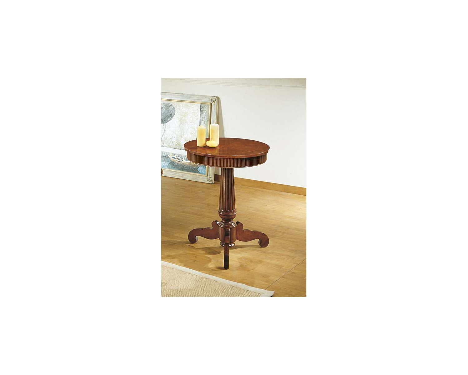 TAVOLINO ROTONDO RIGATO CON PIANO SPINAPESCE E FILETTO DIAM. 60 H.75