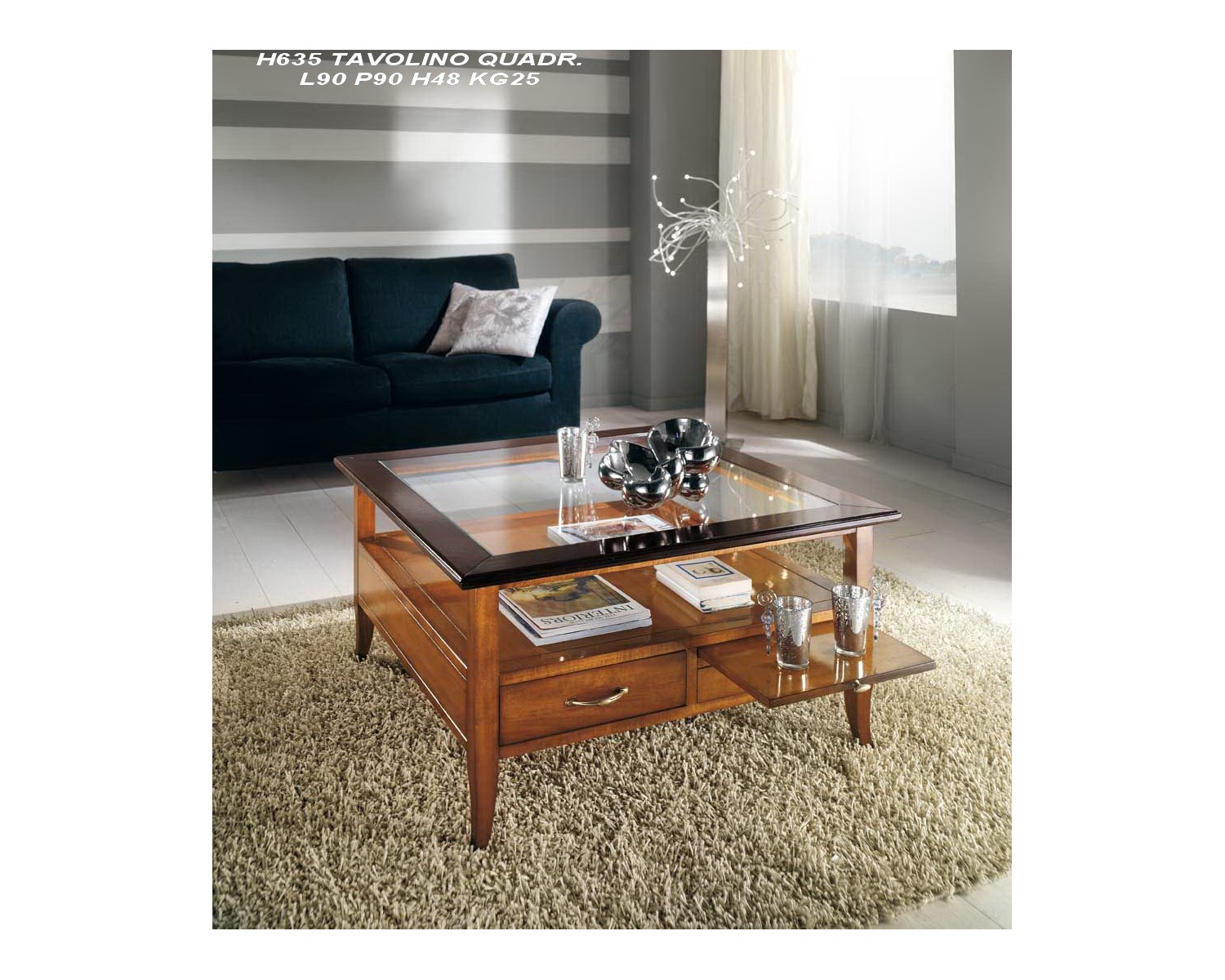 TAVOLINO QUADRATO 2 CASSETTI 2 TIRETTI L.90 H.48 P.90